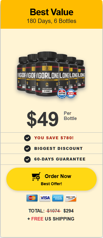 VigorLong has been offering remarkable support for men’s sexual health in their 30s, 40s, 50s, and even 70s. Developed with the latest scientific advancements, VigorLong’s formula is both gentle and powerful, composed entirely of pure plant ingredients and natural minerals. You can also have peace of mind knowing it is produced in the USA at a cutting-edge facility that is FDA registered and GMP certified.